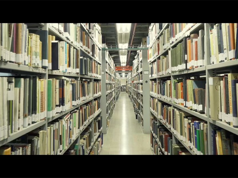 As always in her works, Goldvicht doesn’t stop at the site itself but rather seeks out its human factor. The piece, which was fimed throughout several years, included interviews with the library’s staff as an integral part of the work. The new library building makes use of state-of-the art technology, boasting of automated storerooms and robots for locating the books. In contrast, Goldvicht’s videos of the old library basements reveal glimpses of the posters and postcards with which members of the staff decorated their workspace – traces of a human presence among the bookshelves and of the now- obsolete machinery on the site.